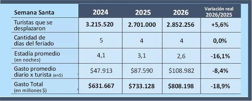 Semana Santa: más de 2,8 millones de turistas y un impacto económico de $ 808.198 millones